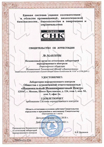 Лаборатория неразрушающего контроля ООО «Национальный Инжиниринговый Центр» — проводит неразрушающий контроль продукции, изделий и объектов во всех регионах РФ. Неразрушающий контроль — это контроль, при котором не должна быть нарушена пригодность технических устройств, зданий и сооружений к применению и эксплуатации.